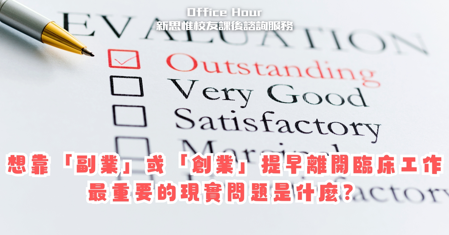 問:對於想靠「副業」或「創業」提早離開臨床工作的年輕醫師,你認為最容易忽略、但最重要的現實問題是什麼?