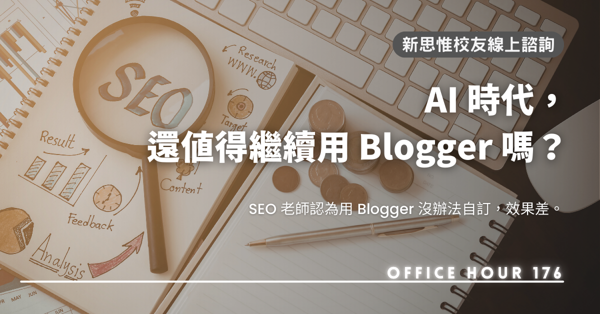 問:請問校長,AI 時代,我們還值得繼續用 Blogger 嗎?我去上了 SEO 跟 AI SEO 的課程,SEO 老師認為用 Blogger 沒辦法自訂,效果差,而且寫作沒辦法照 SEO 技術架構以及一些我聽不太懂的技術設定處理。但因為我回來後,實際寫作變得很痛苦,甚至抗拒。我想問的是,AI SEO 時代到底該怎麼做?我真的要花心神打掉重練嗎?